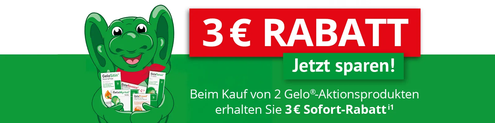 Der Coupon berechtigt zu einem Preisnachlass von 3 € beim Kauf eines der Produkte GeloMyrtol® forte, GeloRevoice®, GeloProsed®, GeloTonsil® oder Myrtol® der Pohl-Boskamp GmbH & Co. KG. Eine Barauszahlung ist ausgeschlossen. Der Coupon darf nicht vervielfältigt werden. Die Einlösung ist ausschließlich in teilnehmenden stationären Apotheken in Deutschland möglich.